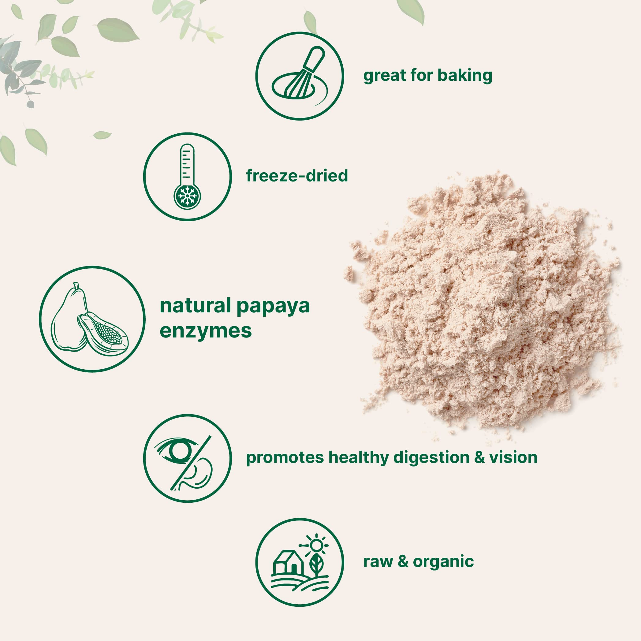 - USDA Organic Papaya Powder, 8 ounce supply, non-GMO and vegan friendly freeze-dried papaya source.